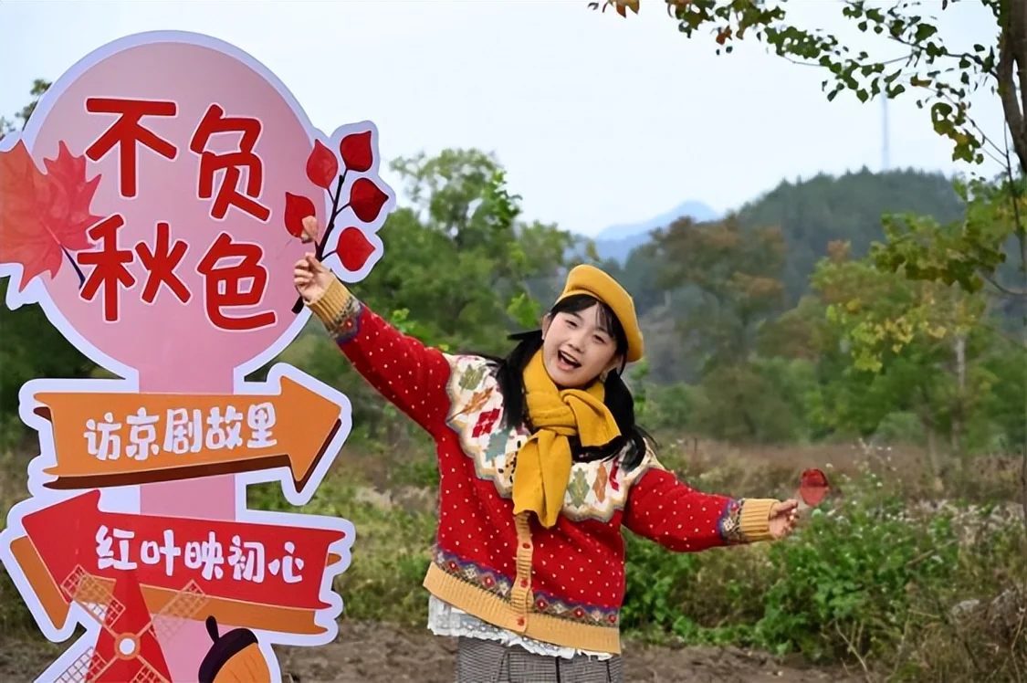 图说:游客打卡中国最美田园红叶地——圣人堂村